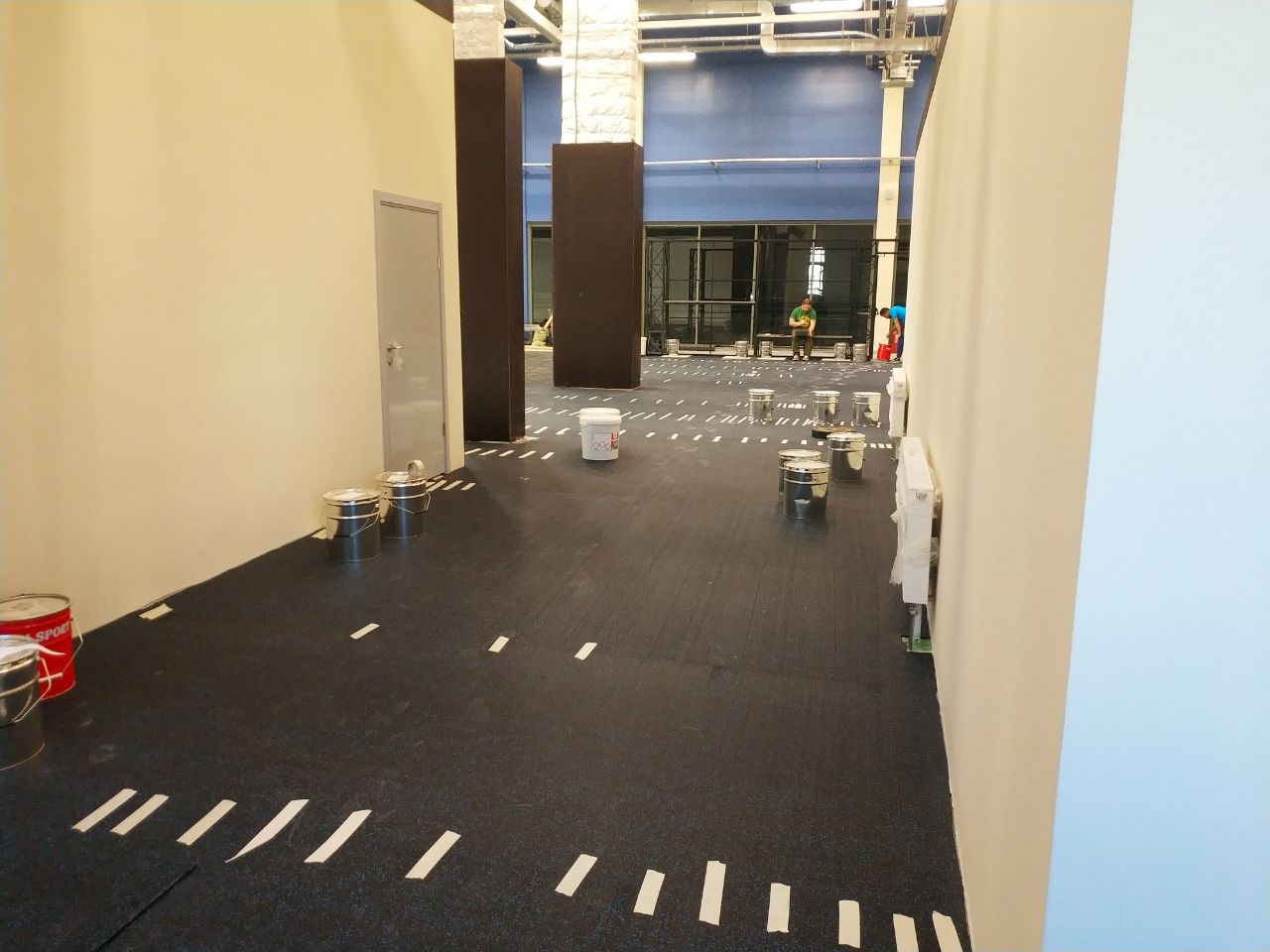 Работали по дизайн-проекту — 350 м² ковровых покрытий с фигурной резкой в виде планет солнечной системы. Завод Ege в Дании специально под этот проект освободили производственную линию, и на протяжении 9 часов производили ковровое покрытие Highline с эксклюзивным дизайном.