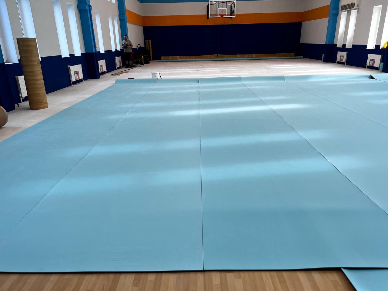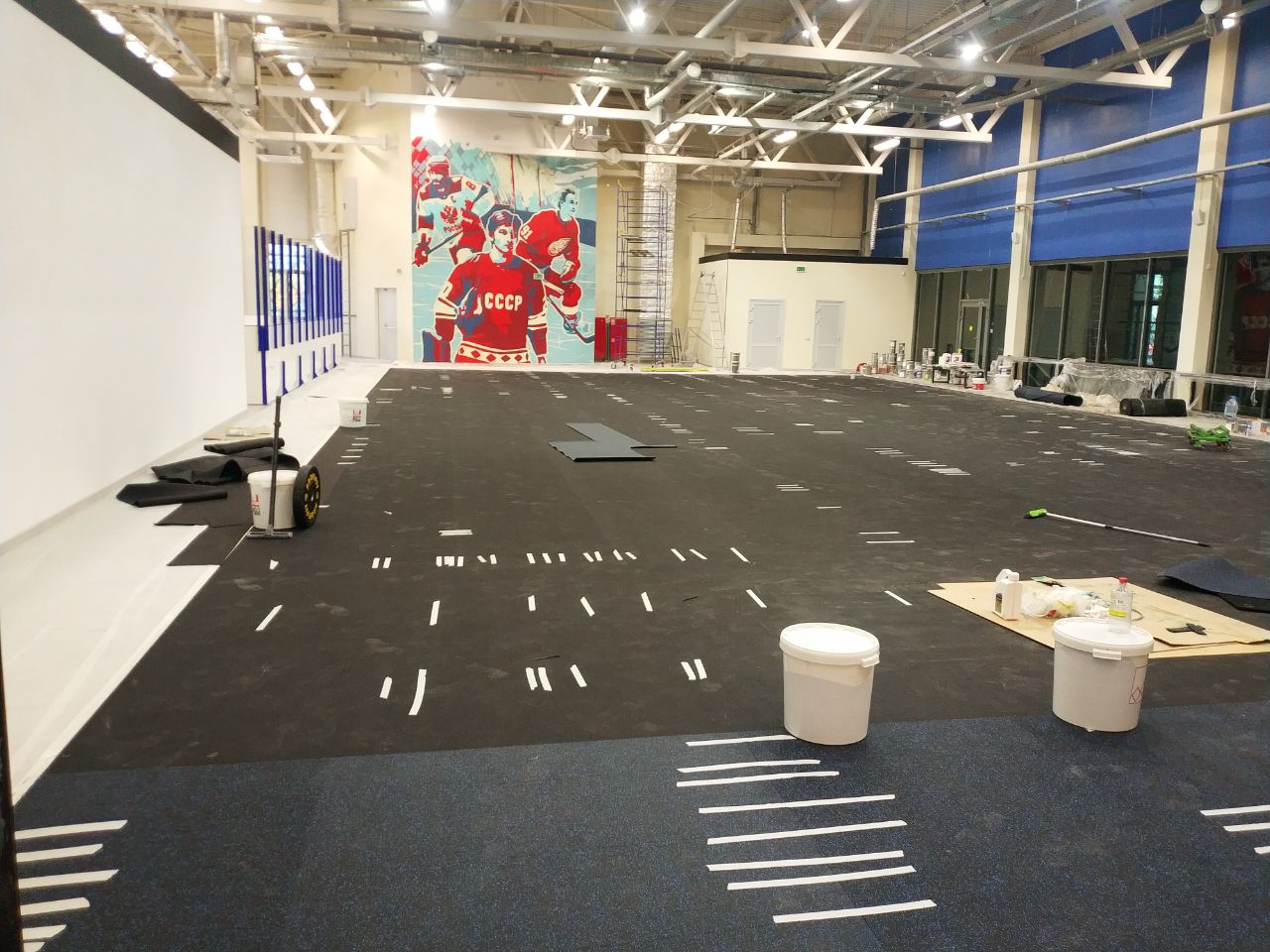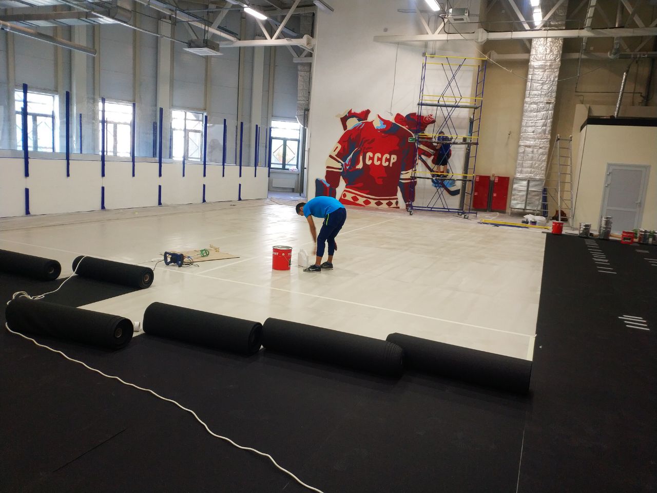 Укладывали спортивный линолеум в большой спортзал в центре офиса, спортивную паркетную систему в тренировочных залах. Сотрудникам понравилось. Нам тоже.